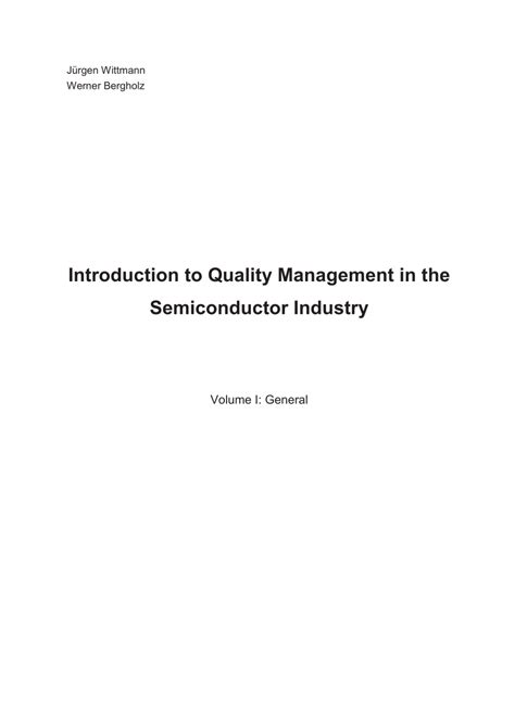 Title: - Introduction To Quality Management In The Semiconductor Industry Volume I General