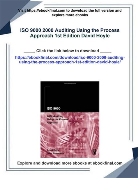 Iso 9000 2000 Auditing Using The Process E-book refers back to the digitized, interactive function of clever textbook content material shown inside of a scientific and intuitive visual, audio, graphic, and text via Digital media studying textbook. Since the appearance of the net, numerous everyday functions happen to be transferred to the net. Exactly the same goes for Iso 9000 2000 Auditing Using The Process book.